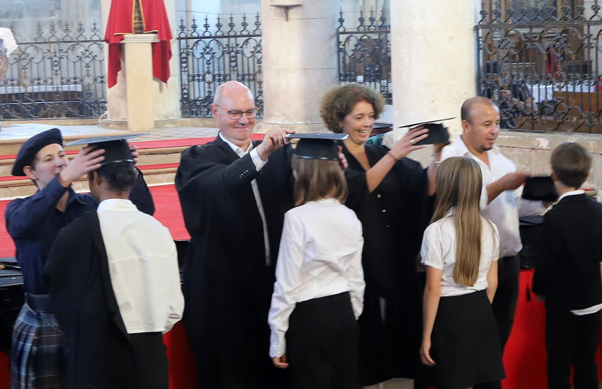 La cérémonie s’est poursuivie avec la traditionnelle remise des « mortarboards », ces coiffes noires, symbole de réussite académique. Appelés par groupes de cinq, les élèves se sont inclinés devant leurs enseignants après avoir reçu leur précieux couvre-chef. Une mise en scène codifiée, empreinte de respect, même si l’autorité bienveillante mais ferme de Philip GOMIS a parfois manqué pour canaliser l’enthousiasme débordant des plus jeunes, qu’Amy BRACKNALL a su néanmoins gérer avec tact et humour.