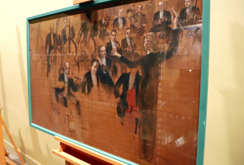 Mais comment évoquer le théâtre d’Auxerre sans un mot sur les fresques ornant ses murs et son plafond, dont pour l’occasion, quelques esquisses sorties des réserves municipales étaient présentées aux visiteurs ? Réalisée au sortir de la guerre, l’œuvre du peintre auxerrois Jean BURKHALTER résonne en écho au style Art Déco des lieux, « bien loin des traditionnels angelots et dorures en vogue à l’époque, qui faisaient de chaque théâtre une bonbonnière… ».