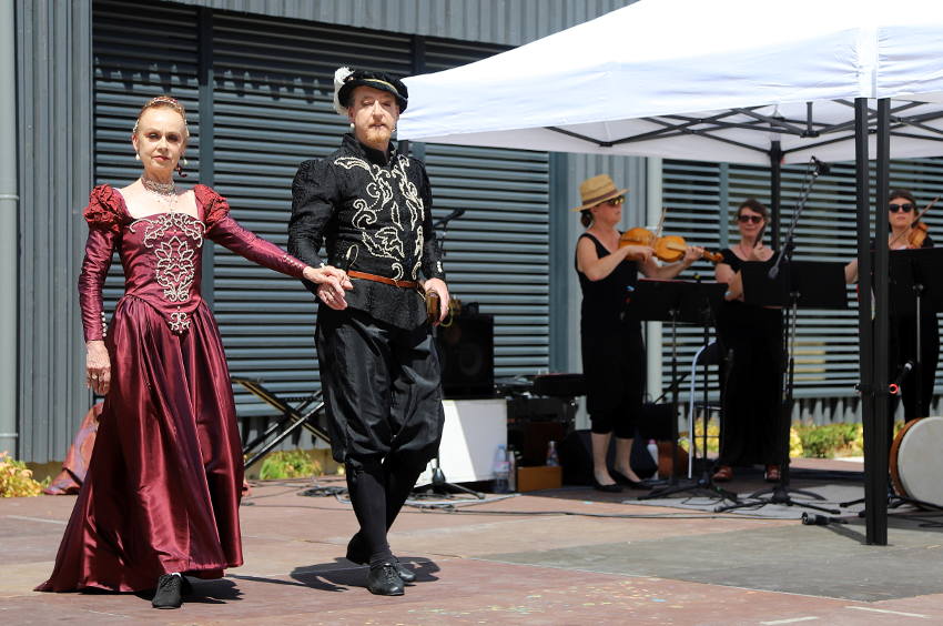 AUXERRE : Mener un bal « Renaissance », en costumes, sous un soleil de plomb, tout en conservant sourire et sérénité n’est pas à la portée du premier venu ! Maîtres de danse de la Compagnie « Bassa Toscana », qu’ils ont créée il y a près d’un quart de siècle, Stéphane QUÉANT et Bernadette JACQUET ont démontré tout leur professionnalisme sur le parvis du Conservatoire, lors du bal ouvrant les festivités de cette journée inaugurale.