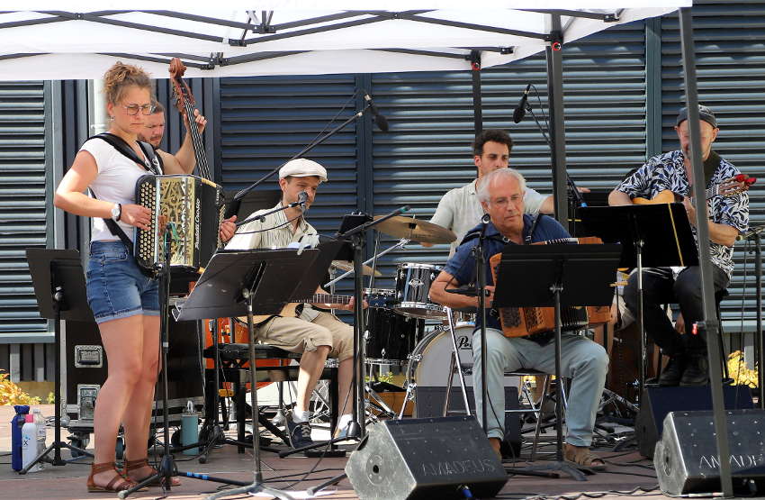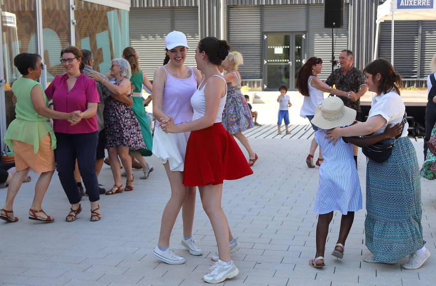 Pour preuve le nombre grandissant d’élèves se lançant dans l’apprentissage du « piano à bretelles », dont certains sont présents sur l’estrade avec leur instrument, à l’image d’autres collègues du Conservatoire venus prêter main forte, pour une première partie dédiée aux danses traditionnelles morvandelles ou bretonnes. Sur le parvis enfin redevenu ombragé, quelques couples entament une valse et l’accordéon pleure sous les notes et les paroles de « La Nonchalante ». Le traditionnel breton qui suit, fait élargir le cercle et c’est parti pour un « laridé » venu tout droit du pays vannetais ! Pas d’excuses pour ne pas entrer dans la ronde ! L’atelier de danse folk « Folle Cadence » est là pour aider et encourager les néophytes.
