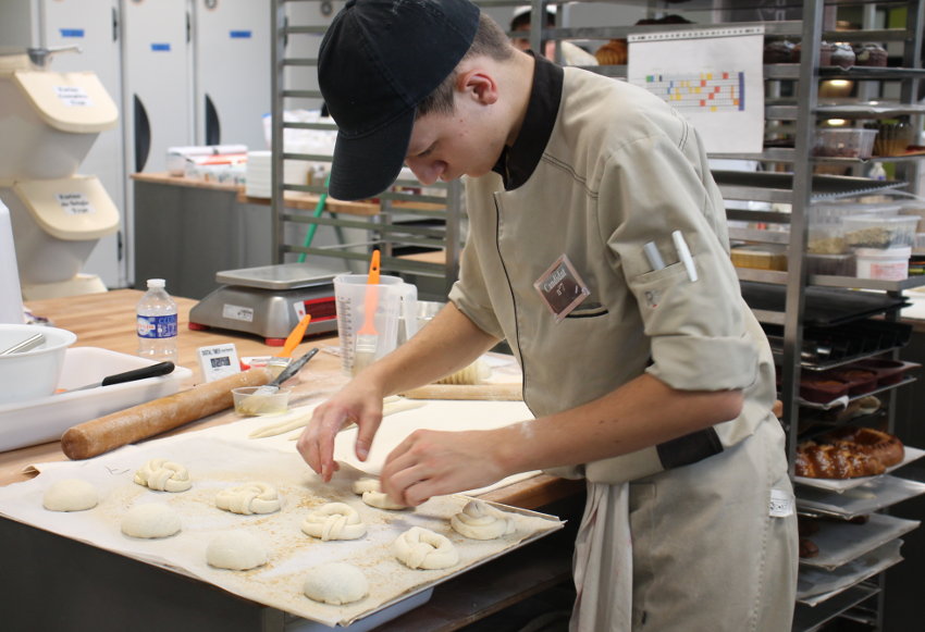 Tous âgés de moins de 21 ans, la vingtaine de prétendants à ce titre de gloire qui auréolera à jamais le CV des boulangers en herbe vit avec intensité ce moment déjà crucial de leur apprentissage, voire de leur carrière. Participer à une finale nationale d’une épreuve aussi prestigieuse depuis quatre décennies, ce n’est pas rien ! L’atmosphère est pesante et silencieuse dans les couloirs du centre de formation que le petit groupe découvre lors d’une visite au pas de charge proposée par Maxime LAUZET, l’homme de la communication au CIFA. Demain, certains commenceront leur compétition dès 4 heures du matin ! Alors, autant de se familiariser du mieux possible avec l’endroit, cher à son président, Didier CHAPUIS.