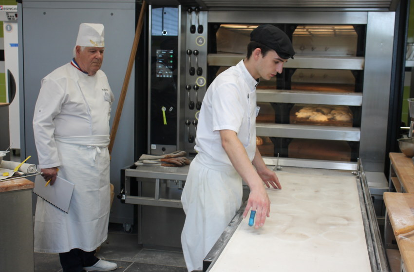 En attendant la venue des hautes instances de la Confédération nationale de la Boulangerie-Pâtisserie française (CNBPF) – son président, Dominique ANRACT, originaire de Villeneuve-sur-Yonne, devant arrivé mercredi soir -, et de la Société nationale des Meilleurs Ouvriers de France (SNMOF) – là aussi le président nationale, Jean-François GIRARDIN a confirmé sa venue à Auxerre -, les choses sérieuses ont déjà débuté dans le pôle boulangerie du CIFA auxerrois où s’affairent les premiers concurrents. Sous le regard attentif des membres du jury, dont Laurent BISSON, président des boulangers de l’Yonne et président de l’U2P 89, qui prend des notes sur un porte-document.