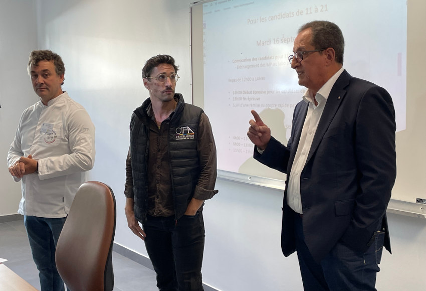 Il est tellement précautionneux vis-à-vis de ces jeunes concurrents qui n’en perdent pas une miette (de pain, il va de soi !) que l’intervenant présente même les risques topographiques de l’endroit (une petite barre de seuil) lorsque les candidats devront circuler avec un chariot d’une pièce à l’autre avant de constituer l’assemblage définitif de leur présentation ! Du grand Marc LABARDE, comme d’habitude, devrait-on dire ! Invitant au passage les filles et garçons devant disputer cette finale nationale à se dépasser coté créativité, tout en prenant beaucoup de plaisir à vivre l’instant présent. Les valeurs circulent aussi durant cet entretien liminaire d’avant confrontation : « respectez-vous les uns les autres durant cette compétition, insiste Marc LABARDE, prenant le relais du président du jury Xavier BORDET, ne confondez pas vitesse et précipitation, cela peut donner des résultats négatifs… ».