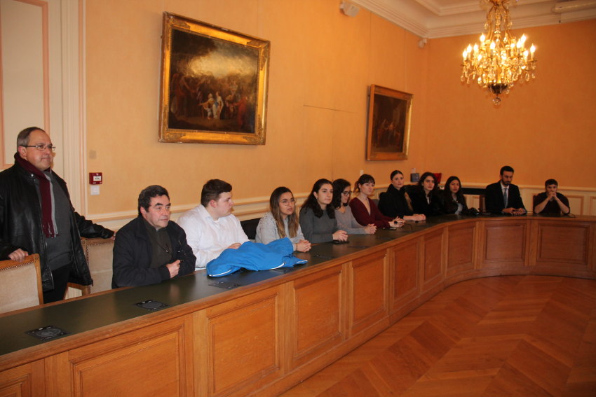 « Des échanges cordiaux et encourageants en faveur de la cause européenne à l’hôtel de ville d’Auxerre. Une délégation d’élèves d’un lycée espagnol de la Rioja, accueillie au lycée des métiers Vauban dans le cadre du programme ERASMUS, a été reçue par le maire Guy FEREZ et une partie de l’équipe municipale… ». « Des échanges cordiaux et encourageants en faveur de la cause européenne à l’hôtel de ville d’Auxerre. Une délégation d’élèves d’un lycée espagnol de la Rioja, accueillie au lycée des métiers Vauban dans le cadre du programme ERASMUS, a été reçue par le maire Guy FEREZ et une partie de l’équipe municipale… ». Crédit photos : Thierry BRET.
