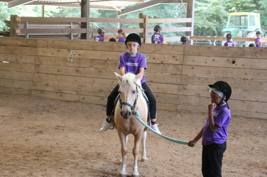 La centaine d’enfants sur place dont 43 jeunes franciliens en provenance de Créteil partage son emploi du temps entre des activités liées aux équidés (le site héberge en permanence plus de cent-vingt chevaux et poneys), la natation ou le parcours acro-branches.
