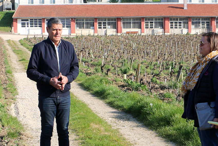 Le travail bat son plein dans les vignes multiséculaires du Clos de la Chainette, plus ancien domaine viticole attesté de France. Après la taille, est arrivé le temps du « baissage », une opération manuelle visant à empêcher la plante de croître de façon anarchique. Travaux en vert, relevage, rognage, effeuillage… Passé l’hiver, les activités sont multiples, accessibles pour certaines très rapidement explique Thierry MILLIERE : « Pour certaines tâches saisonnières, l’on peut vite être opérationnel sans besoin d’une longue formation, quelques jours suffisent… ». A contrario, certains choisissent un cursus plus long, enchaînant les formations pour plus de polyvalence, à l’image de Justine (*) actuellement en stage au domaine, dont le témoignage spontané et passionné aura peut-être fait naître quelques vocations parmi les visiteurs du jour. En quête d’un métier de secrétaire, mais faute de trouver un stage adapté, elle a fait le choix l’an dernier de se réorienter vers la viticulture.