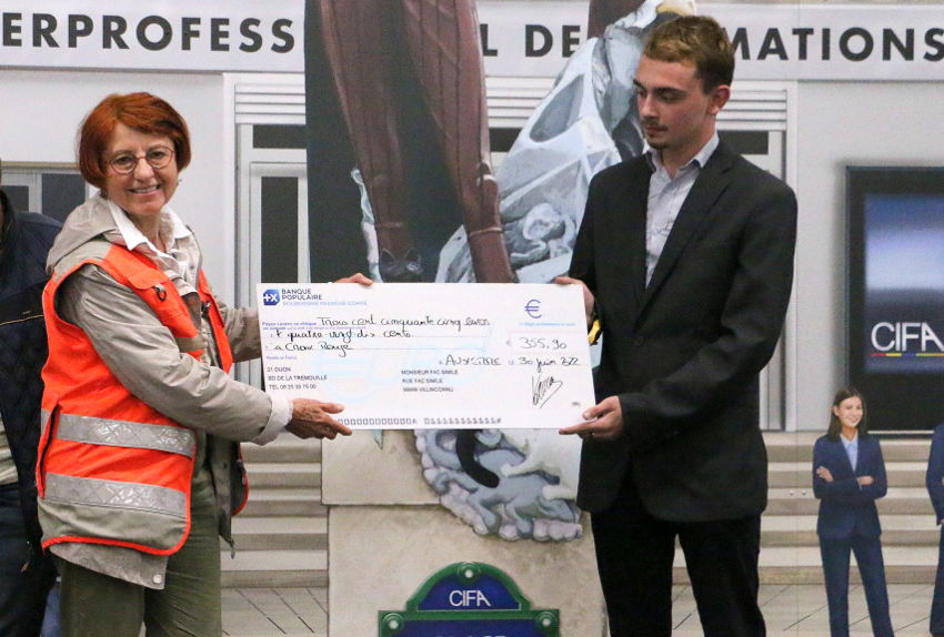 Un chèque de 355 euros a été remis à la présidente de la Croix-Rouge icaunaise par les apprentis en formation CAP vente.