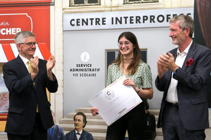 AUXERRE : C’est par une « standing ovation » qu’ont été accueillis dans la salle les héros du jour, avant que chacun ne reçoive sur scène le précieux document attestant de leur réussite. Ils étaient 64 cette année à être récompensés pour l’excellence du travail fourni. Certains ayant même connu le Graal en décrochant une médaille d’or au Concours national des Meilleurs Apprentis de France (MAF), à l’image de Léa ROUGIER, en BTS Métiers de l’Hôtellerie et de la Restauration, pour la plus grande fierté de son maître d’apprentissage, le chef étoilé bien connu, Jean-Michel LORAIN.