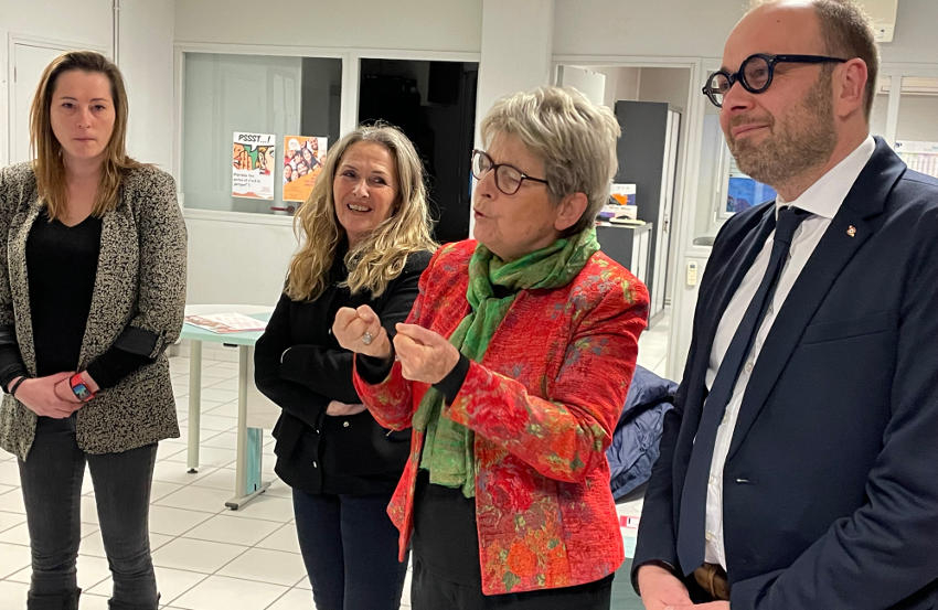 « Nous finançons des cours de français à destination de nos concitoyens qui ne maîtrisent pas suffisamment leur langue maternelle chaque année, explique-t-elle, devant un mini auditoire lors de sa visite chez DECLIC Emploi, la structure d’intérim gérée par Sylvie SIDOU et sa fille Axelle. Nous avons étendu ce dispositif aux personnes étrangères parce que cela repose sur du bon sens. La maîtrise de la langue, c’est la première d’intégration dans un pays… ».