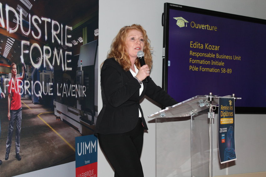 Responsable du « Business Unit » (la formation initiale), Edita KOZAR orchestra en qualité de maîtresse de cérémonie la déclinaison auxerroise de cette remise de récompenses, très suivie. La même animation eut lieu dès le lendemain dans les locaux du Pôle de formation à Sens. Celle qui concernait le public nivernais venant se greffer en sus à ce triple évènementiel.