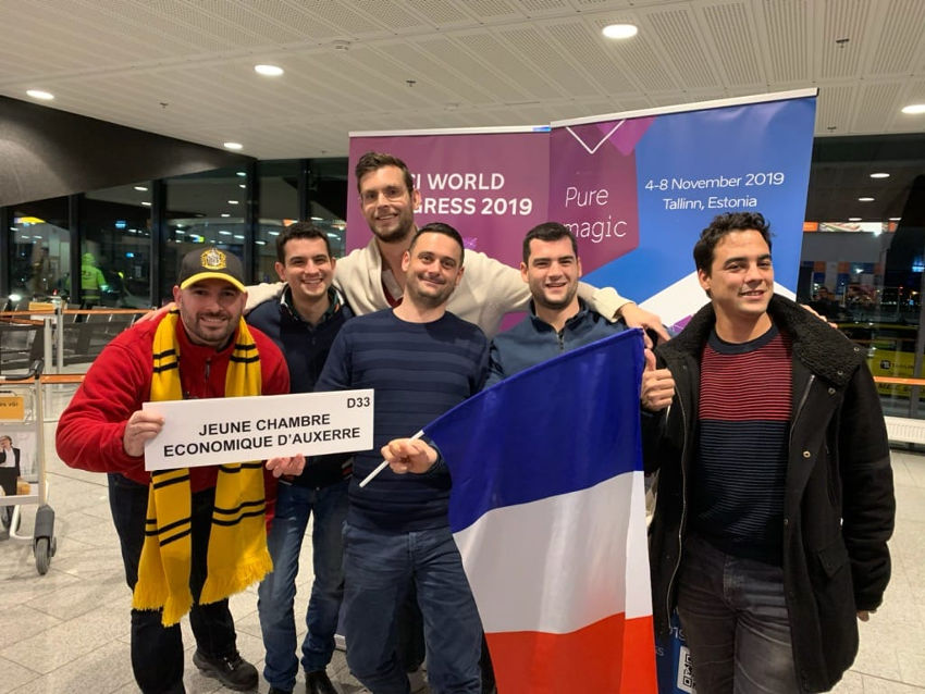 « Une délégation qui ne manque ni d’humour ni d’élégance : les représentants de la JCE Auxerre imposent le ban bourguignon au Congrès mondial de Tallinn en Estonie ! ». « Une délégation qui ne manque ni d’humour ni d’élégance : les représentants de la JCE Auxerre imposent le ban bourguignon au Congrès mondial de Tallinn en Estonie ! ». Crédit Photos : JCE Auxerre.