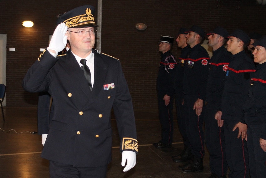 Ancien officier de l’Armée de terre et diplômé de l’Ecole de guerre et du Centre de doctrine d’emploi des forces, l’ex-sous-préfet d’Issoire (Puy-de-Dôme) en poste dans notre département depuis la fin de l’été ne pouvait manquer de faire honneur à la sainte patronne de ces sapeurs-pompiers dont il devait ensuite saluer le travail, l’abnégation et le sens, parfois, du sacrifice ultime.