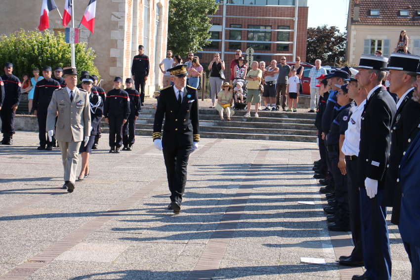 Le commissaire divisionnaire Raphaël JUGE, directeur départemental de la Sécurité publique sur notre territoire et le lieutenant-colonel Hubert TISSIER, délégué militaire départemental de l’Yonne, complétèrent ce tableau de personnalités. Quant au préfet de l’Yonne Henri PREVOST, il passa les troupes en revue, accompagné des officiels de l’armée, avant que ne se lance cette cérémonie.