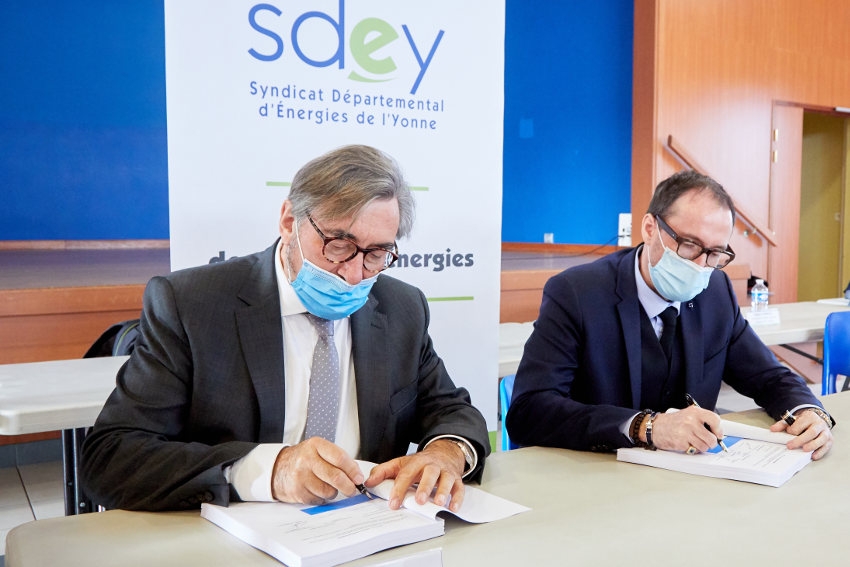 « Le Syndicat départemental des Energies de l’Yonne (SDEY) représenté par son président Jean-Noël LOURY a confié pour une durée de trente ans la gestion de la distribution de l’électricité à ENEDIS, partenaire de confiance. Une opération à laquelle était associé le fournisseur d’électricité EDF… ». « Le Syndicat départemental des Energies de l’Yonne (SDEY) représenté par son président Jean-Noël LOURY a confié pour une durée de trente ans la gestion de la distribution de l’électricité à ENEDIS, partenaire de confiance. Une opération à laquelle était associé le fournisseur d’électricité EDF… ». Crédit Photos : Studio Xavier MORIZE.