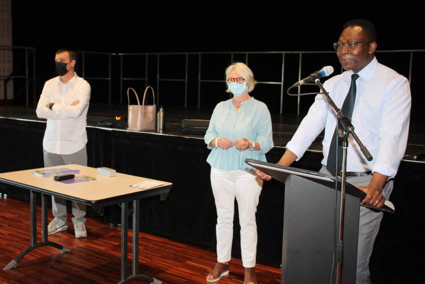 Avant de poursuivre le déroulé de la soirée, en dévoilant avec moult détails les trois grands principes du programme (la faisabilité financière des projets, la maîtrise de la fiscalité et la planification annuelle des investissements), Magloire SIOPATHIS accueillit au pupitre la sénatrice UDI Dominique VERIEN.