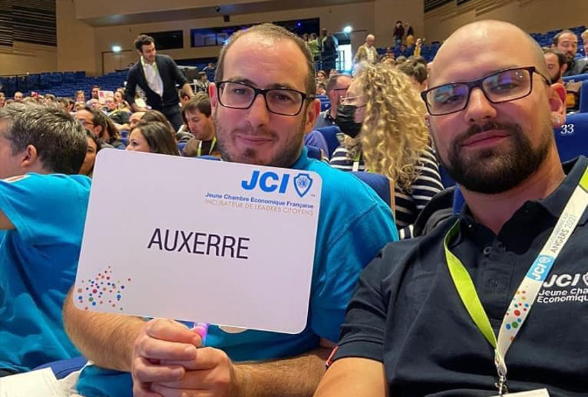 ANGERS : Ah, on les aura vus les représentants de la JCE d’Auxerre lors de ce congrès national 2021, organisé dans ce beau département du Maine-et-Loire ! On les aura entendus aussi puisque deux de ses membres, les frères BAILLY, Adrien et Clément, ont eu l’opportunité de prendre la parole du fait de leurs nouvelles responsabilités !
