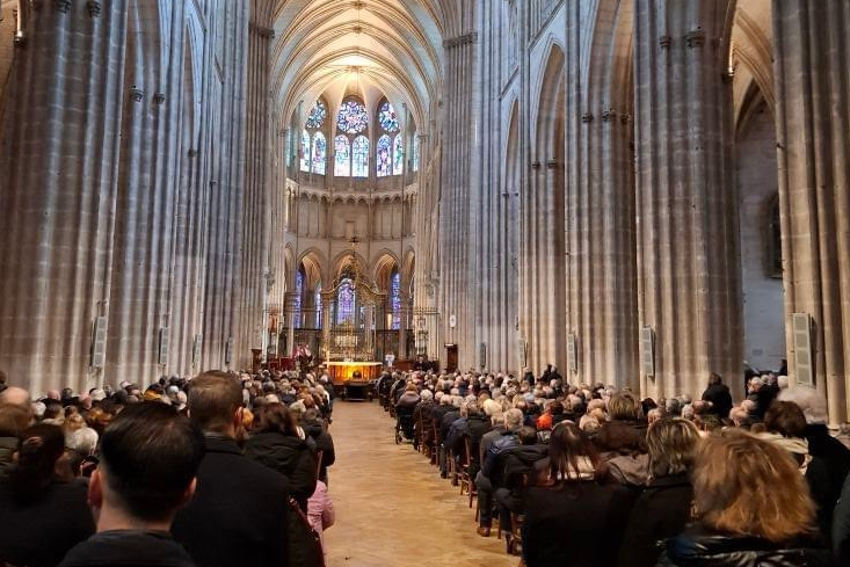 La voix forte, amplifiée par la sonorisation audible de l’édifice gothique, Grégory DORTE salua dès les premiers mots la mémoire de « son président bien aimé » que certains des élus du département connaissaient depuis plusieurs décennies. Et de citer les prénoms de ses collègues de l’institution départementale, à l’instar de Marie-Laure (CAPITAIN), d’André (VILLIERS), de François (BOUCHER), etc.
