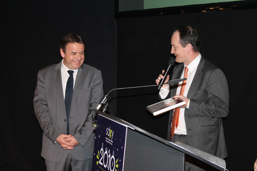 Mais, avant de pousser le bouchon plus loin sur ce futur objectif, il convia le directeur régional du Bureau VERITAS, Jacques MATILLON, à le rejoindre sur la scène de l’Espace culturel. Premier vice-président du SDEY en charge des finances et du personnel, Philippe MAILLET, en fit de même. L’instant devint solennel. Le directeur de la structure, Eric GENTIS, fut également invité à partager ce moment essentiel de la vie du syndicat, né du rapprochement d’une multitude de petites structures.