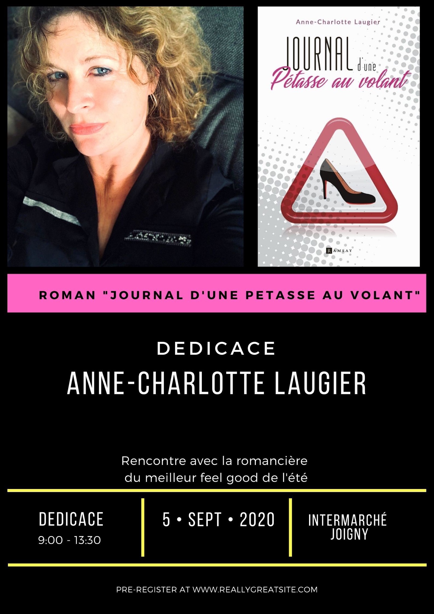 « L’auteure de la « Pétasse au volant » (un journal de bord au style désopilant et irrésistible) Anne-Charlotte LAUGIER présentera son premier ouvrage lors d’une séance de dédicace organisée dans une galerie marchande à Joigny ce 05 septembre… ».