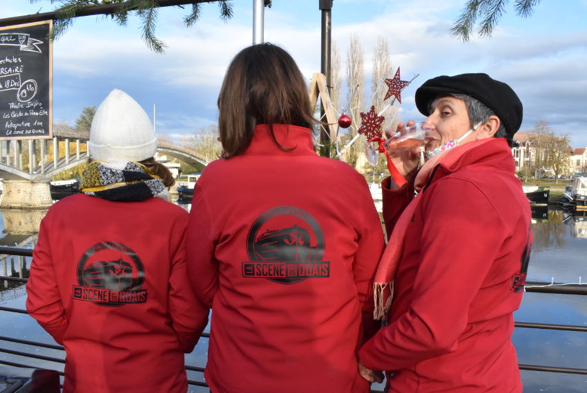 La Scène des Quais, c’est également vingt-cinq bénévoles de l’association ARTEM qui gère la programmation, pour laquelle ce jour-là des produits à emporter et des boissons chaudes furent vendus afin de garantir un minimum de salaire aux artistes. Quand la solidarité s’invite à bord de la fameuse péniche…