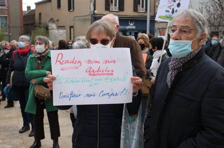 « Il a besoin d’obtenir des certitudes sur une date précise de réouverture de ses établissements, le milieu culturel ! Afin de mieux l’anticiper et la coordonner. Pierre KECHKEGUIAN, directeur du théâtre d’Auxerre, a laissé circuler le micro ce jeudi matin pour que les artistes et le public puissent faire part de leur ras-le-bol généralisé…un cri du coeur ». « Il a besoin d’obtenir des certitudes sur une date précise de réouverture de ses établissements, le milieu culturel ! Afin de mieux l’anticiper et la coordonner. Pierre KECHKEGUIAN, directeur du théâtre d’Auxerre, a laissé circuler le micro ce jeudi matin pour que les artistes et le public puissent faire part de leur ras-le-bol généralisé…un cri du coeur ». Crédit Photos : Thierry BRET.