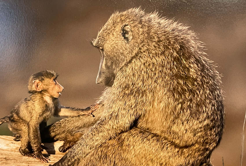 Que dire de cette maman girafe et de son girafeau qui se promènent nonchalamment dans la savane ! De ce couple de singes, la mère et son petit, inscrit pour l’éternité dans ce travail esthétique qui se passe de mots pour le commenter ! De ces oiseaux couchés dans la brillance de ce cadre suspendu à sa cimaise !