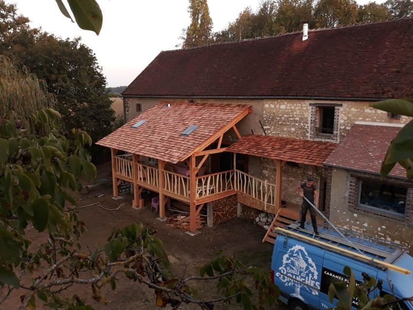 BOUTS DE BRANCHES, appellation amusante pour désigner la raison sociale d’une TPE, se promène d’un domaine à l’autre de son activité avec maestria et facilité. L’élagage représente à ce jour environ 20 % du chiffre d’affaires en 2019. Mais, la création et fabrication d’hébergements insolites à partir de bois brut confère à l’entreprise la possibilité de s’épanouir dans un tout autre registre, celui de la menuiserie et de la charpente.