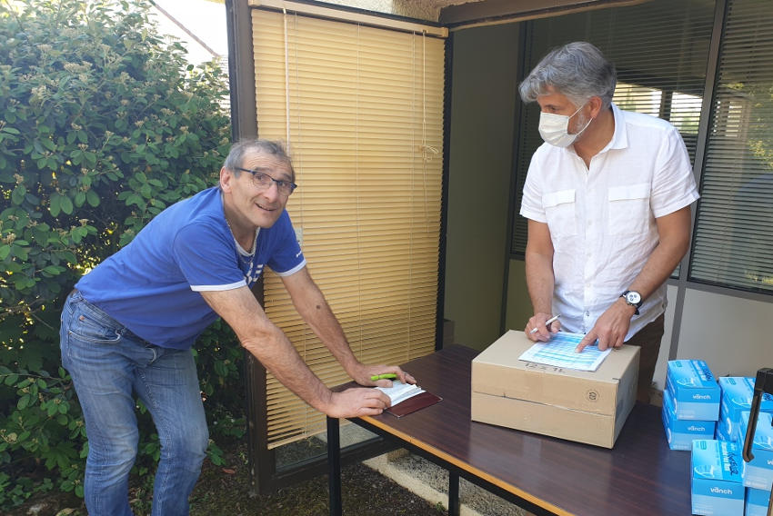 Aidé par l’un de ses collaborateurs, le représentant de la FFB remettait à chacun des entrepreneurs préalablement inscrits les boîtes de cinquante masques, en respectant les consignes sécuritaires d’usage.
