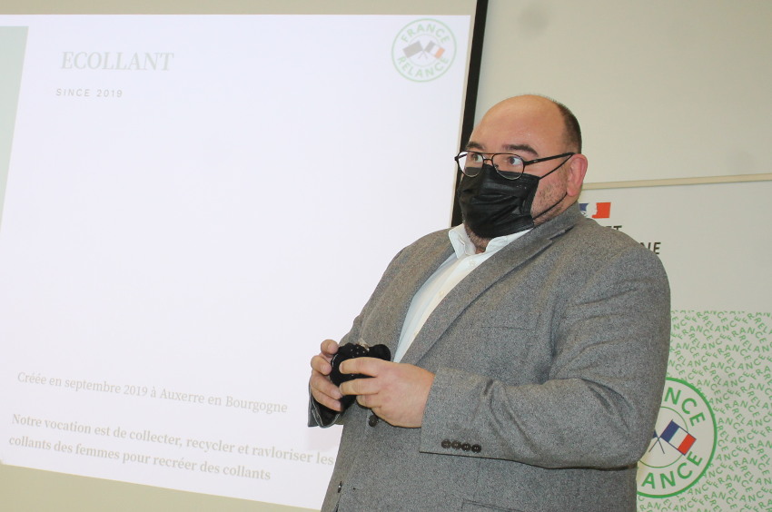 « Le fil d’Ariane de la start-up ECOLLANT est soutenu par l’Etat à travers son dispositif du plan de relance. Objectif : collecter et recycler les paires de collants usagés qui sont jetées chaque année en France. Pour mieux les valoriser et créer de nouveaux produits. Un concept qui a enthousiasmé le préfet Henri PREVOST… ». « Le fil d’Ariane de la start-up ECOLLANT est soutenu par l’Etat à travers son dispositif du plan de relance. Objectif : collecter et recycler les paires de collants usagés qui sont jetées chaque année en France. Pour mieux les valoriser et créer de nouveaux produits. Un concept qui a enthousiasmé le préfet Henri PREVOST… ». Crédits Photos : Thierry BRET et D.R.