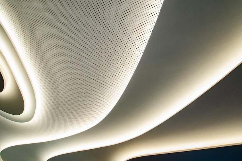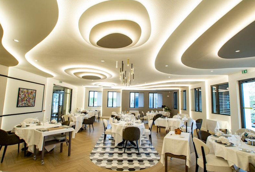 Au sein du CIFA, on lui doit l’agencement décoratif du restaurant d’application, un bijou de gourmandise visuelle, de l’espace dégustation des vins et de l’univers brasserie. Il suffit d’admirer le moindre drapé de ce plafond éclairé par ses jeux de lumière discrets et l’on croirait voire apparaître de petites vaguelettes.