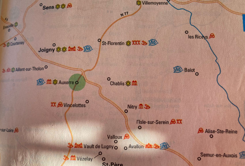 Les hôtels sont sur le net, et les restos demeurent encore dans une des dernières versions papier, vraisemblablement en sursis. Va pour le net et tapons dans la catégorie hôtels, la ville d'Auxerre. On me propose alors Le Château de la Resle à 225 euros la nuit, ou La Borde à Leugny pour 450 euros, le Panoramic à Sancerre pour 106 euros, le château  du Vault-de-Lugny pour 300 euros ou encore le relais Bernard Loiseau à Saulieu pour 408 euros ! Sans commentaire, mais attristant. Tant pis pour les familles, les touristes, les randonneurs, les motards et autres.... qui n'intéressent plus le Michelin.