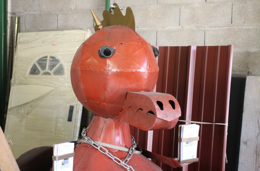 « « Nestor », l’emblématique mascotte des Ets VALET n’est pas à vendre, elle ! Mais, pour le reste, tous les matériaux entreposés par l’entrepreneur d’Appoigny, Marc VALET (à gauche) doivent connaître une nouvelle vie plutôt que d’être jetés ! C’est ce que pense le président de la Chambre de Métiers Jean-Pierre RICHARD…».