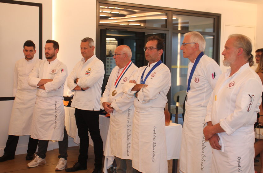 Pendant l’exécution de ces recettes, les candidats étaient surveillés par un trio, là-aussi, de jurys, experts dans la production des plats. On retrouvait là, Matthias DIAS GONCALVES, le nouveau propriétaire et chef du « Soleil d’Or » à Montigny-la-Resle, et deux représentants de l’Amicale des Cuisiniers de l’Yonne, Dominique COURTAIN et Manu DELANNOY.