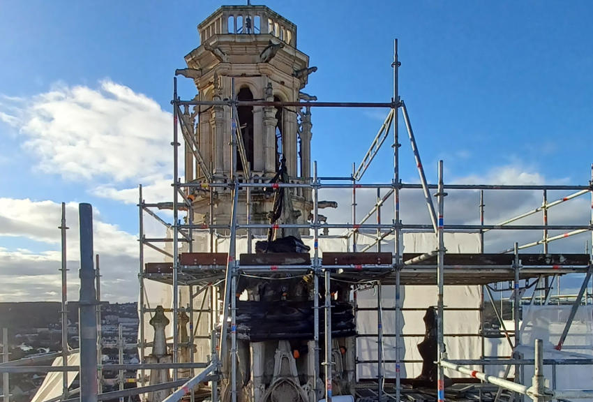 A l’extérieur, l’échafaudage a révélé aux visiteurs des détails artistiques et architecturaux d’une extraordinaire finesse. D’ailleurs, « plus on s’élève, plus la tour est ornementée » précise Frédéric DIDIER. « Une volonté de faire quelque chose qui tend vers le ciel, qui joue avec les ombres et lumières… ».