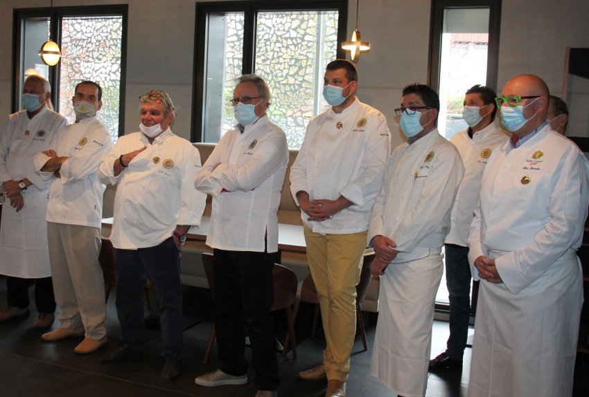 Réunis dans l’espace brasserie du restaurant d’application, tous portent beau. Les vestes d’apparats sont munies de leurs insignes si caractéristiques et reconnaissables. Celles qu’ils arborent fièrement avec magnificence et droiture, traduisant leur appartenance à l’honorable Académie Culinaire de France.