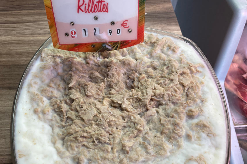 Un étal artisanal, avec les fabrications charcutières maison que sont rillettes, terrines de lapin, mais aussi saucisses délicatement fumées. De belles viandes françaises, livrées par l'entreprise de Migennes « SYCAVIL » que notre boucher fait rassir comme il se doit. Le rêve de cet amateur de harengs pommes à l'huile serait un jour de travailler en direct avec un éleveur local. Un peu comme le faisait ce passionné de Gilles BOUQUET, regretté boucher de la Ferté-Loupière, un très bel exemple en la matière.