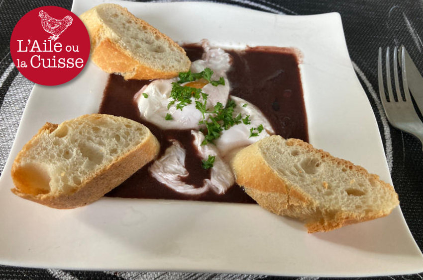 Je choisis alors la courte carte, désireux de commencer par les œufs en meurette. La sauce est « nappante », un rien acide comme il se doit, mais il manque quelques croûtons aillés, en lieu et place de simples rondelles de pain. Les œufs sont bons et impeccablement cuits.