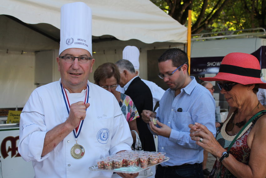 « Les chefs Guy ROY et Daniel AUBLANC, aux côtés du maire de Tonnerre Dominique AGUILAR, ont réveillé les appétences gustatives des visiteurs en goguette sur la foire de Tonnerre. Le 14 septembre, lors de la Foire d’Auxerre, ils remettront le couvert avec l’Amicale des Cuisiniers de l’Yonne pour le traditionnel concours de gastronomie ouvert à des amateurs… ».