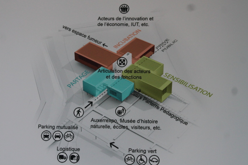 « Avant même de lancer un appel à projets en direction des entreprises vertes pour rejoindre ce pôle, ajoute l’un des chefs de file d’Auxerre Ecologie, ce dernier avait reçu et accepté les candidatures de plusieurs start-ups, soucieuses de s’y installer. C’était le cas d’AK TEAM (bureau d’études en écologie), de PHENIX (entreprise gérant la seconde vie des produits et luttant contre le gaspillage alimentaire), de DIVINE (avec sa filiale de recyclage des collants usagés), d’INGENT (bureau d’études et recherche & développement en géosciences). D’autres frappaient également à la porte, à l’instar de BIO Bourgogne qui souhaitait y ouvrir un espace de huit personnes travaillant sur le développement des circuits courts. Quant à l’association AUX’OLEIL (toits solaires), elle avait fait part de sa volonté de rejoindre le pôle… ».