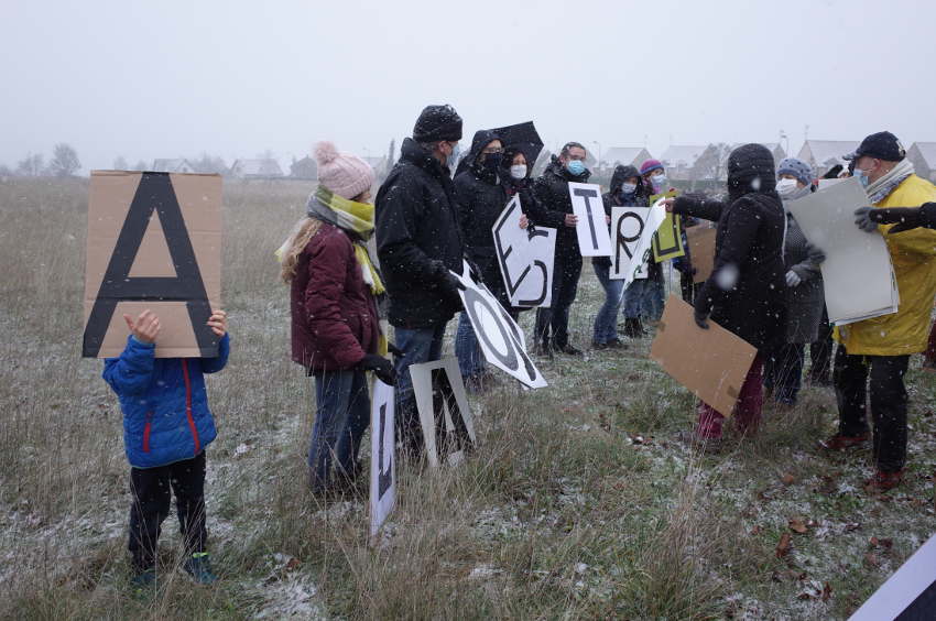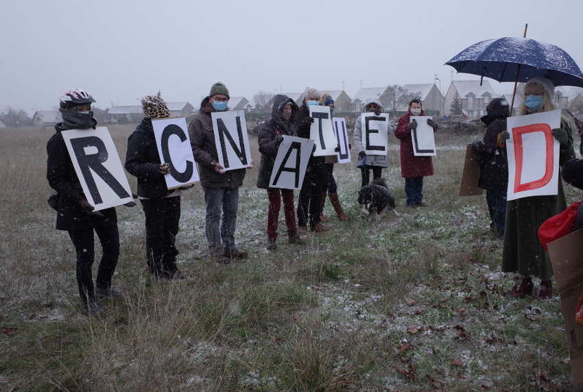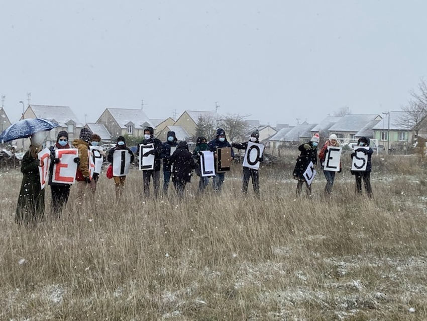 Munis d’une cinquantaine de pancartes symbolisant des lettres de l’alphabet, les opposants à ce projet ont pris position dans la zone des PIEDALLOUES lors de cette action visuelle et sonore avec la prise de parole de ses instigateurs. Rappelant au passage qu’il existait des alternatives différentes pour accueillir la construction de ces bâtiments de la discorde : la fameuse zone d’activités d’Aux R Parc, vide de toute réalisation à l’instant « t », et la zone de la SERNAM, près de la gare ferroviaire où les services de la Bibliothèque Nationale de France pourrait acheminer ses volumineuses archives via le train. Une manière sans équivoque de dire avec insistance que sur ce dossier, on peut aussi y joindre l’utile aux vertus du pragmatisme !