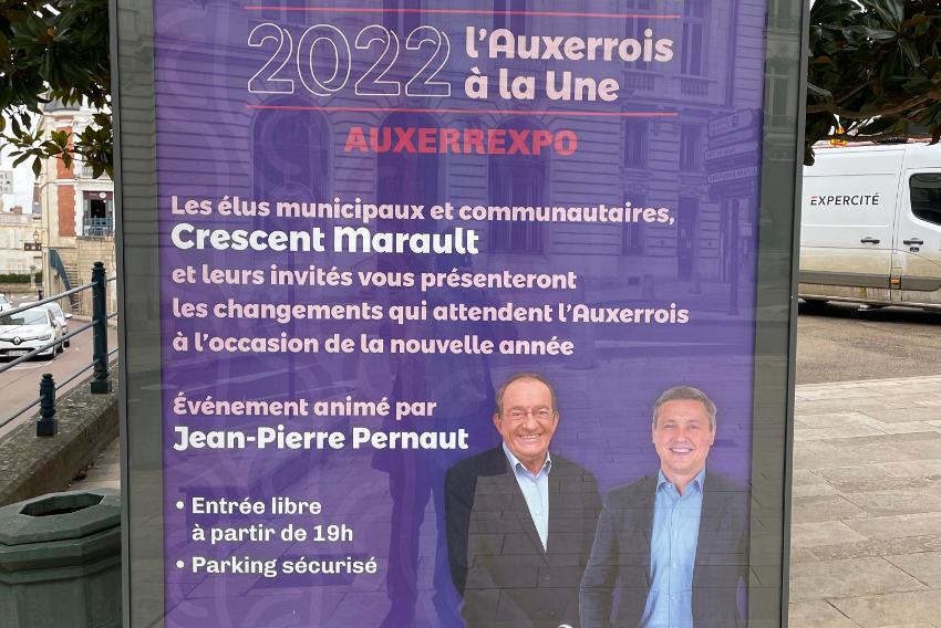 C’est sûr : on ne peut pas la louper l’affiche qui a proliféré tel un champignon poussant dans les sous-bois humides de nos campagnes, aux quatre coins de la ville. Y figurent deux personnages au visage souriant. D’un côté, le maire-président de l’Agglomération de l’Auxerrois, Crescent MARAULT. De l’autre, une figure qui nous est familière pour l’avoir vue tant d’années au « 13 heures » de TF1 : Jean-Pierre PERNAUT. Un premier avril de la communication ? Que nenni ! Une vraie réalité à vivre le 20 janvier !