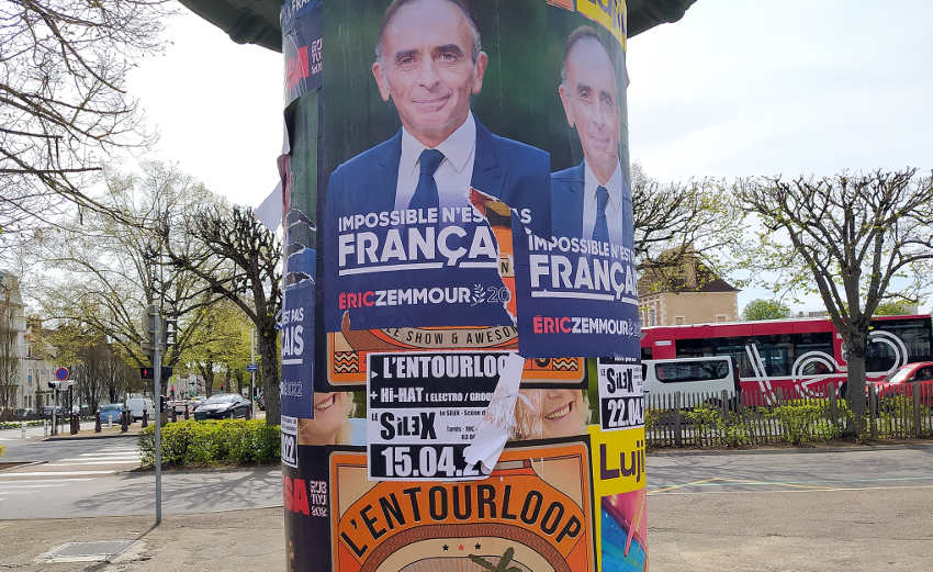 Les candidats passent, les affiches demeurent… Exit Éric ZEMMOUR mais ses supporters les plus zélés ont joué de la colle et du pinceau jusqu’au dernier moment avant le premier tour des présidentielles. De prime abord, l’on pourrait imaginer que les amateurs du groupe « L’Entourloop » avant son passage au Silex à Auxerre le 15 avril dernier, aient voulu saboter la campagne du candidat populiste et pétainiste en juxtaposant des affiches pour leur donner un message subliminal et destructeur… Il n’en est rien ! A y regarder de plus près, l’on découvre que c’est bien l’équipe de campagne de ZEMMOUR qui a recouvert en partie seulement les affiches du groupe de reggae et hip hop pour délivrer ce salutaire avertissement… On ne leur connaissait pas un tel sens de l’humour. A moins qu’il s’agisse d’un sursaut de lucidité !