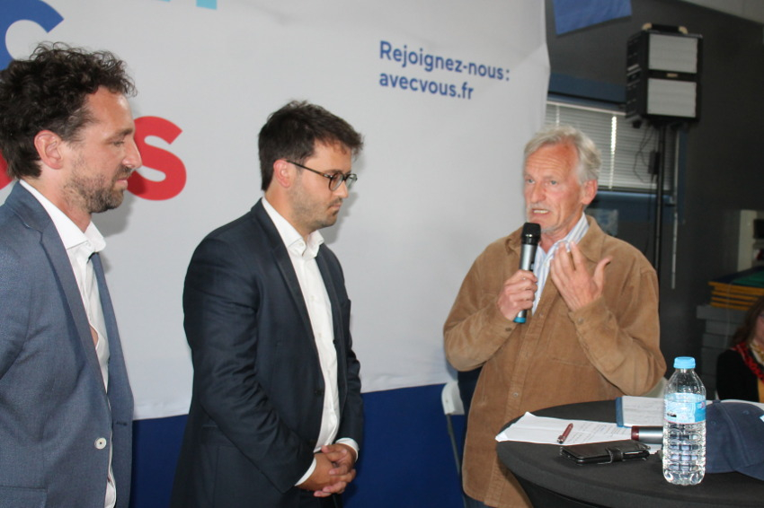 En arrière-plan, Jean-Baptiste LEMOYNE approuve en dodelinant du chef. Monique HADRBOLEC suit les échanges avec concentration. Mahfoud AOMAR qui prendra la parole quelques instants plus tard acquiesce. La sénatrice Marie EVRARD ou encore le président du Parti Radical de l’Yonne, Jacques HOJLO semblent apprécier la démonstration faite par l’orateur qui tenait autrefois les rênes de la première ville de l’Yonne.