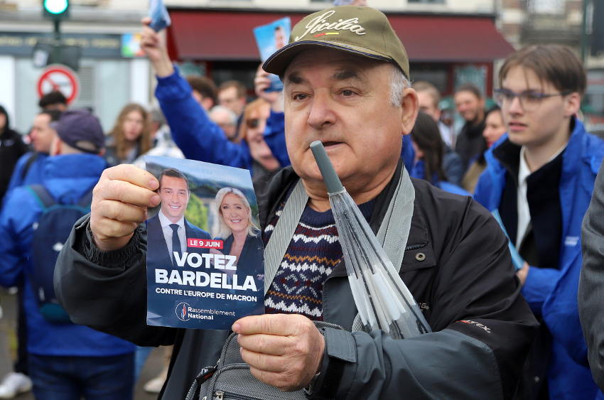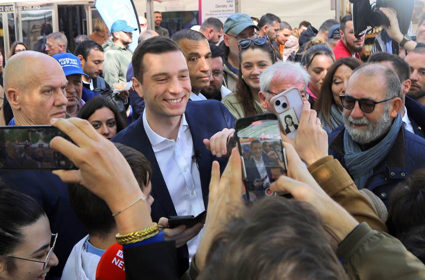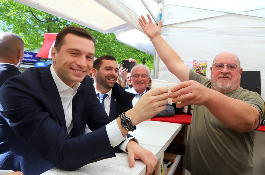 Quelques mètres encore, avant une mini conférence de presse improvisée, autour de sujets de prédilection du parti, comme l’immigration, l’insécurité et le « délitement de la France »… Le petit-fils d’immigrés italiens - il a grandi en Seine-Saint-Denis - a le verbe facile, en atteste son ascension fulgurante, passé en une décennie, d’une adhésion au Front National en 2012, à son élection à la présidence du Rassemblement National en novembre 2022.