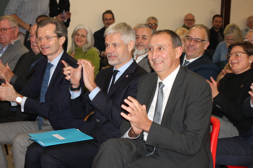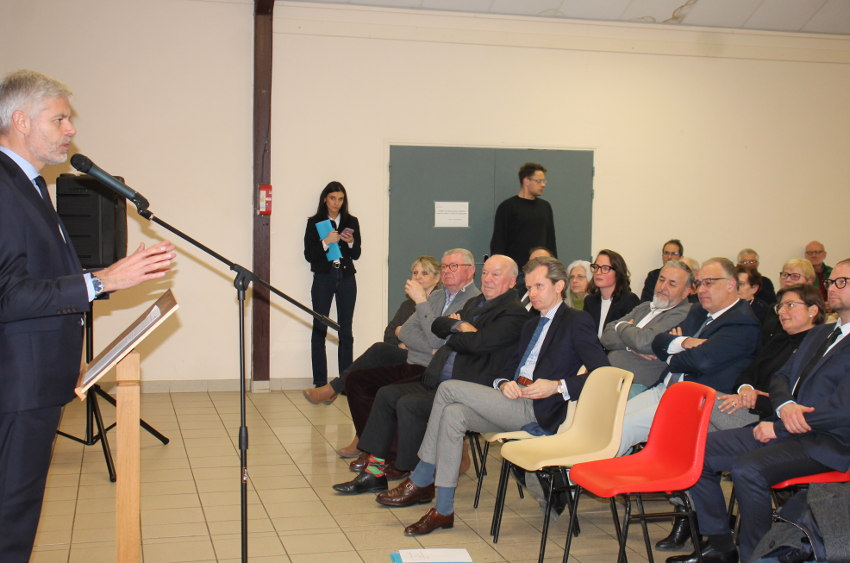 Vint le moment si attendu par la salle où, accompagnée de Céline BAHR, la conseillère régionale, Guillaume LARRIVE en maître de cérémonie en sa qualité de président des Républicains 89, précédé de Grégory DORTE, pénétra dans la salle avec à ses côtés Laurent WAUQUIEZ, l’ancien président de la Région Auvergne-Rhône-Alpes et aujourd’hui président du groupe des députés de la droite républicaine au Palais Bourbon.