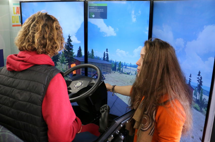 A l’intérieur, une flopée d’équipements high-tech : un simulateur de conduite d’engin agricole, des tablettes connectées, des lunettes de réalité virtuelle, des écrans interactifs, tous destinés à promouvoir les richesses de l’enseignement agricole et ses multiples facettes. Avec pour objectif affirmé, de chasser les aprioris encore trop présents aujourd’hui sur les métiers liés à l’agriculture, notamment auprès des plus jeunes. Si la brouette a encore sa place dans les cours de ferme, il y a longtemps qu’elle se conjugue avec l’informatique et le numérique.