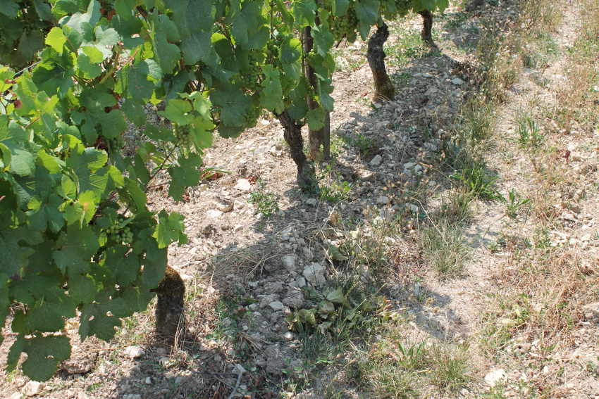 L’après-midi fut consacrée à la visite de plateformes et à la présentation de leurs résultats sur le thème « Stratégie de protection phytosanitaire sans CMR, économes en intrants et d’alternatives au désherbage chimique ». Sous une chaleur accablante, au beau milieu du vignoble, les viticulteurs stoïques devant les effets de la canicule écoutèrent les commentaires de Thierry RICHOUX, du domaine éponyme, sur les expériences menées sur ses parcelles.