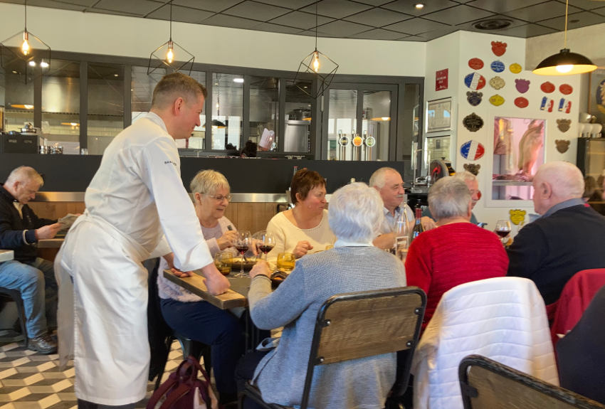 Ce cérémonial permet aussi d'affirmer le professionnalisme des équipes de salle, dont le recrutement est devenu difficile parfois. Le chef DOUCET a traversé la rue pour faire un rapide tour de tables. Beaucoup de clients l'ont connu gamin ou copain dans la cour de récréation. Son pays, il l'aime Frédéric ! Et, cette sincérité se ressent forcément dans l'assiette !