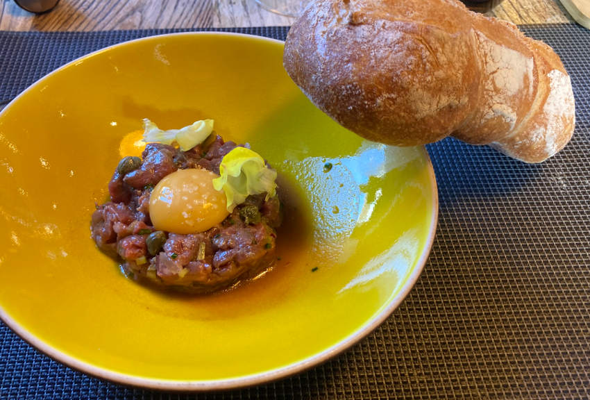 Un déjeuner au « Bistrot du Quai » et c’est un décor chaleureux et un brin viandard, une belle terrasse surplombant l'Arconce, des plaques de comices agricoles, une vue sur la cuisine, qui nous sont proposés. Le décor est planté pour la deuxième adresse de la maison DOUCET, faisant l’objet de la prochaine rubrique.