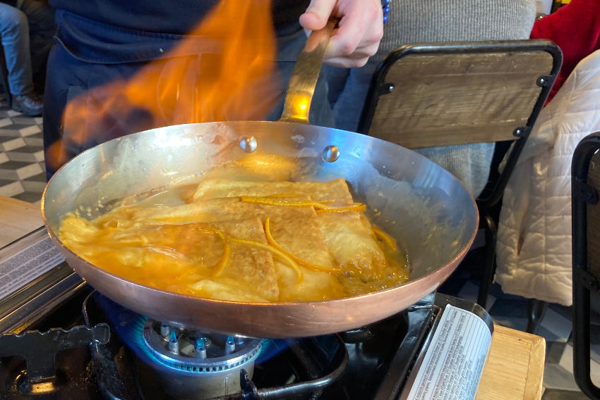 Quel dommage ce serait ici, où ce joli flambage exercé avec maîtrise par la maîtresse d'hôtel, donne à ce dessert de belles lettres de noblesse et de saveur gourmande.....par « Grand-Marnier » interposé ! Ce joli spectacle ravit les sens (vue et odorat) avant de satisfaire le palais.